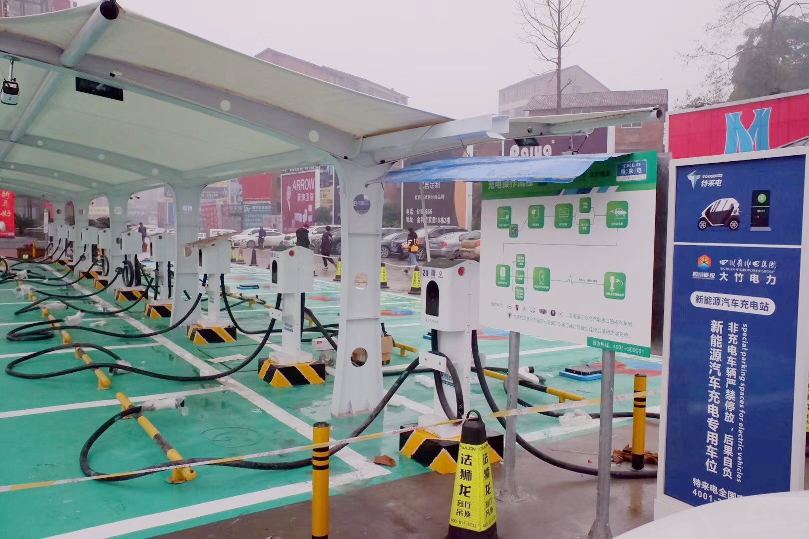 金利美充電站共建設10個充電樁、20支充電槍,配套有18個停車位,可供18輛車同時充電。充電站正式營運后,將移交大竹電力安裝分公司進行日常設備巡視、保養、環境衛生及設備監管等工作。