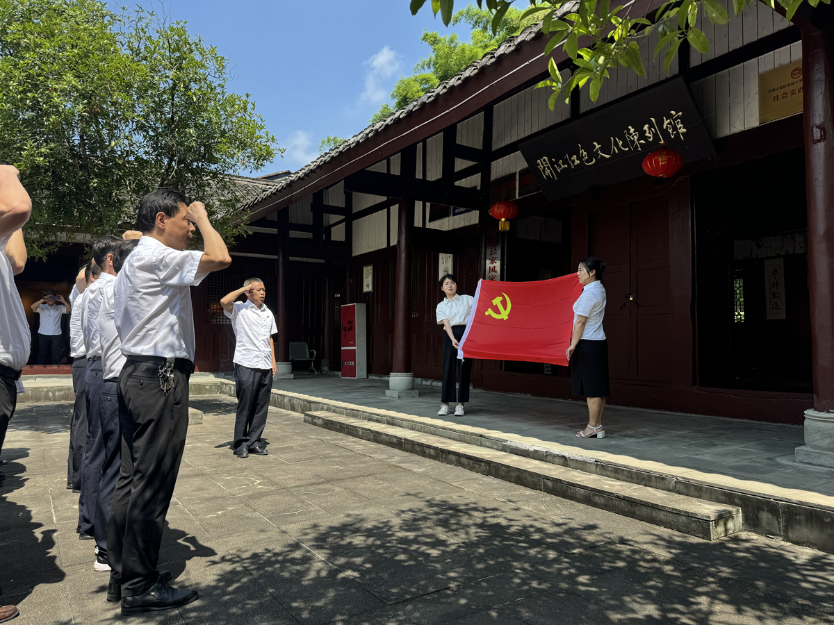 盛夏將至,草木蔥郁,青松翠柏掩映下的開江縣紅色文化陳列館顯得格外莊嚴(yán)肅穆。全體黨員面向黨旗,高舉右拳,重溫入黨誓詞,用錚錚誓言表達(dá)著對黨的忠誠和為共產(chǎn)主義事業(yè)奮斗終身的信心決心。
